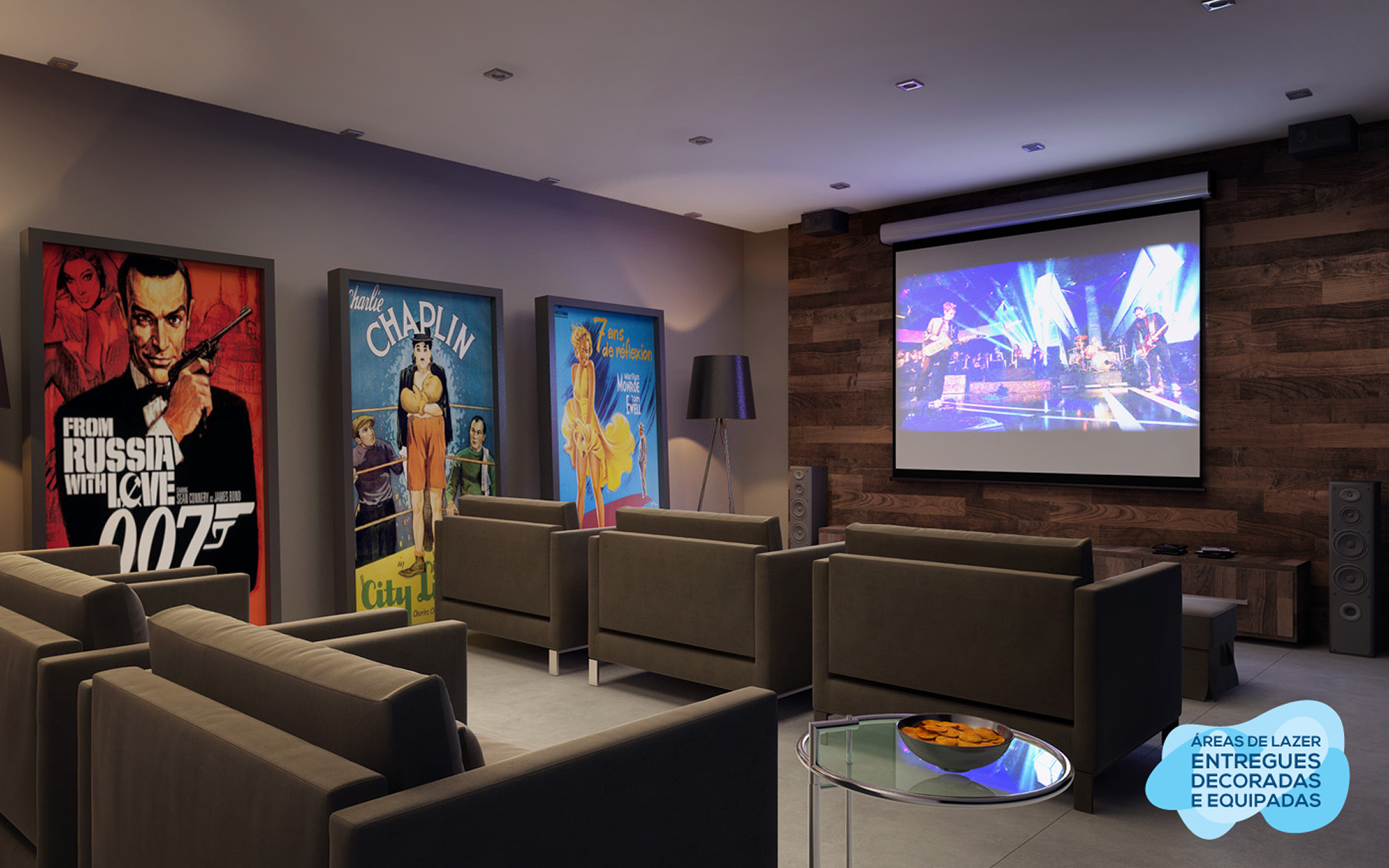 Tudo foi pensado para que o lazer não seja apenas na praia, mas também na segurança do condomínio. Até uma Sala de Cinema foi planejada para a sua diversão. As áreas de lazer serão entregues decoradas e equipadas.